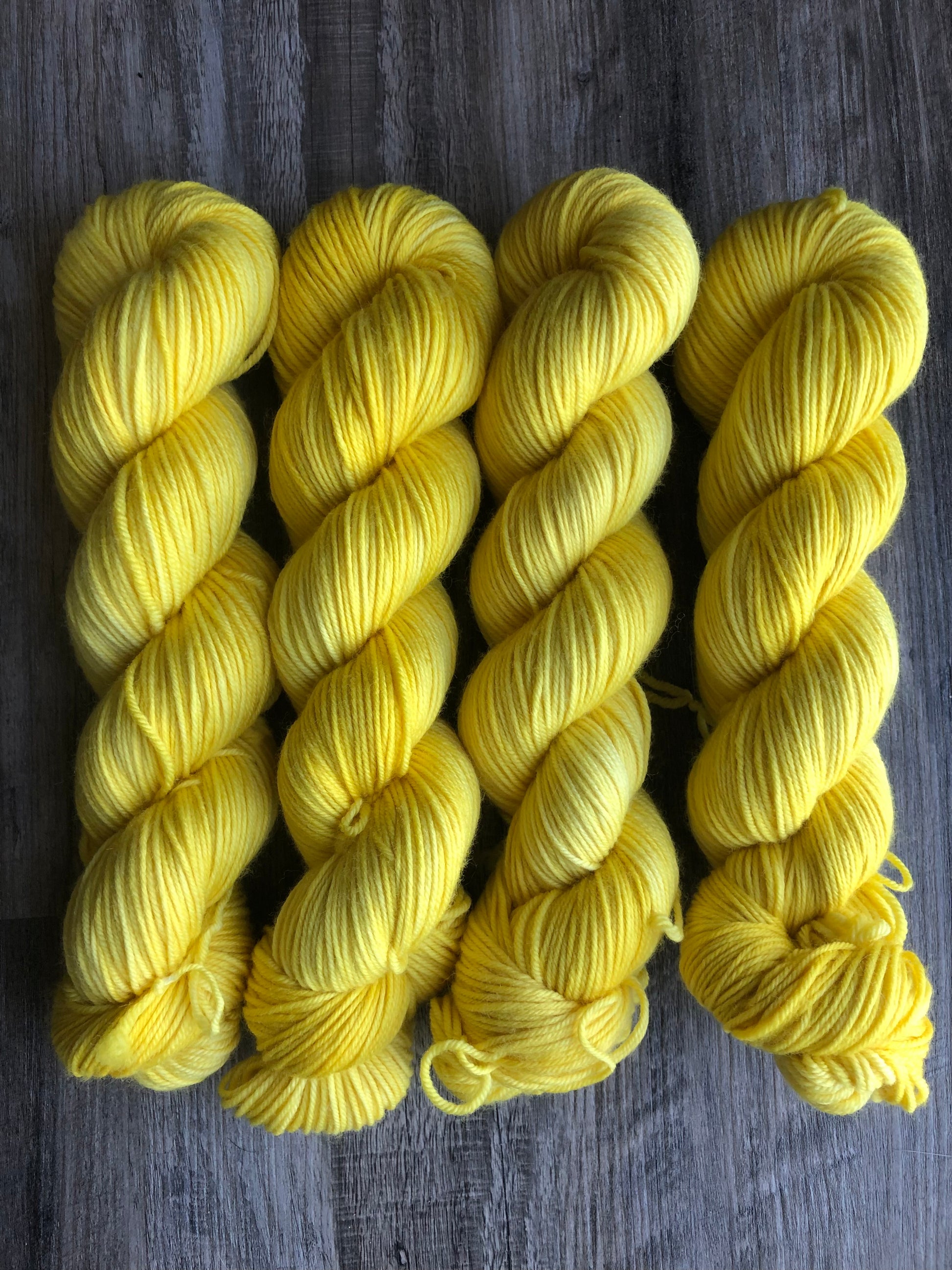 Spring Yellow - Tonal, Semi Solid - Shown in DK and Fingering weight. Available on other bases. See description for details.